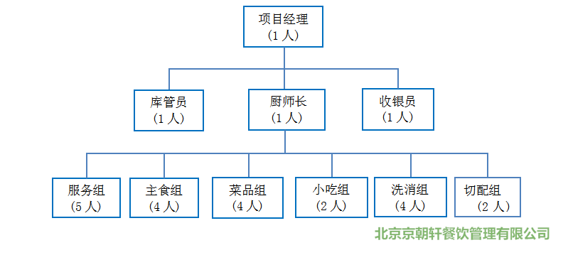 ? ? ? ?我們可以將食堂架構(gòu)看作是一棵參天大樹,有樹干、樹枝、樹葉以主干、次枝、小枝、樹葉至終端若干小枝到樹葉系統(tǒng)化的管理模式。說的更簡單明了一點(diǎn)就是所有職位各司其職,分工明細(xì)明確,每一名食堂工作人員都非常清楚自己的職責(zé)與任務(wù),那么執(zhí)行起來就變得簡單了。