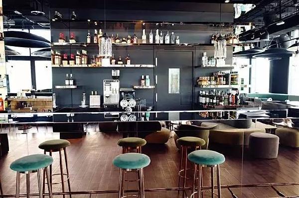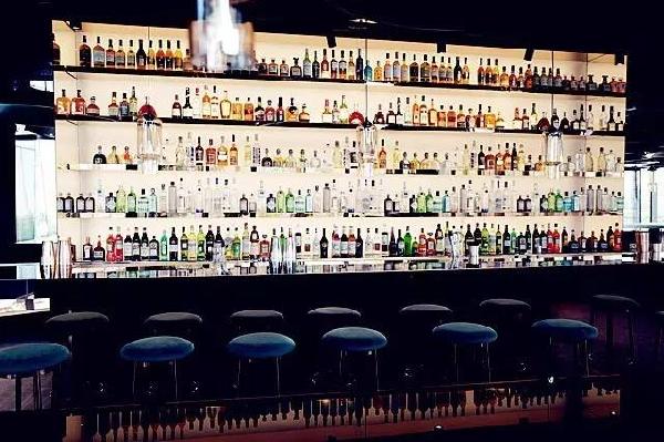 二層的酒吧區(qū),舒適的環(huán)境,高端的設計。鏡面的吧臺,透過鏡子看到就餐區(qū)的影子,使空間看起來更加寬闊。吧臺后方的架子上擺滿了各式各樣的酒水,明亮的架子上造型顏色各異的酒瓶看起來非常好看。