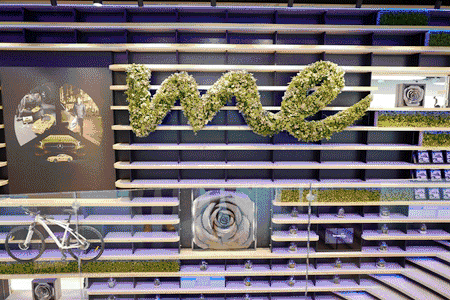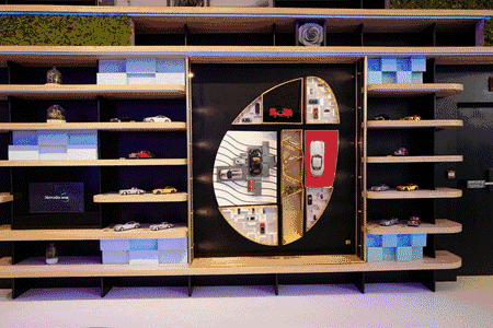 ▽ 進門口可以看到長長的商品展示架,展示各種商品,這是奔馳周邊產品的展示。