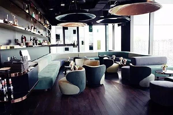 天花的裝飾非常炫酷,與酒吧區(qū)風格調性一致。